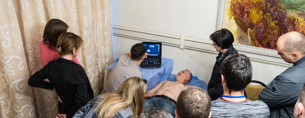 Für unser erstes mobiles Training zog Mehad 1000 km von Lviv (Lemberg), in den Osten der Ukraine, nach Charkiw, etwa 30 km von der russischen Grenze entfernt. Dr. Pierre Catoire und Dr. Vitalii Mahlovanyi, die kurze Zeit zuvor in Lemberg zu Ausbildern ausgebildet wurden, gaben den Unterricht. Unteranderem haben an der Schulung: Kinderärzt*innen, Radiolog*innen, Chirurg*innen und Praktikant*innen teilgenommen. Als unsere Kollegen in Charkiw ankamen, gab es auch schon den ersten Flugabwehralarm. Das Training fand in einem Hotel statt, sodass ein Bunker vorhanden war. Durch immer wieder auftretenden Flugalarm wurde der Unterricht kurzerhand im Keller (Bunker) des Hotels fortgeführt. Alle Teilnehmer*innen erhielten zum Abschluss eine anerkannte Zertifizierung.